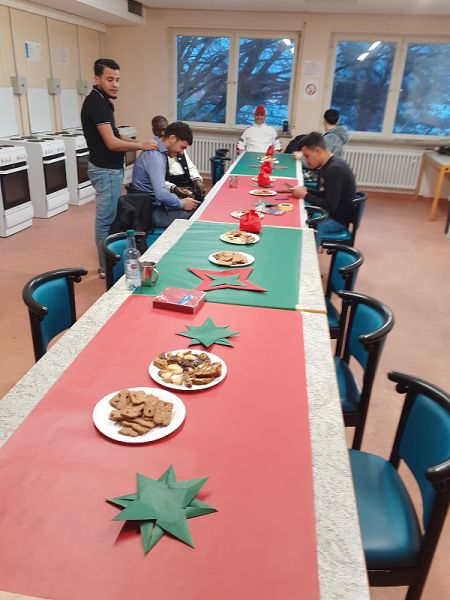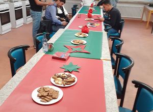 Bei unserer adventlichen Jahresabschlussfeier in Bad Schussenried am 17. Dezember feierten Geflüchtete der Unterkunft mit Ehrenamtlichen zusammen das Jahresende. Bei Punsch, selbstgemachten Plätzchen und schönen, von den Männern selbstgebastelten Sternen saßen wir in geselliger Runde und alle hatten Spaß bei den modernen und traditionellen Tänzen.
