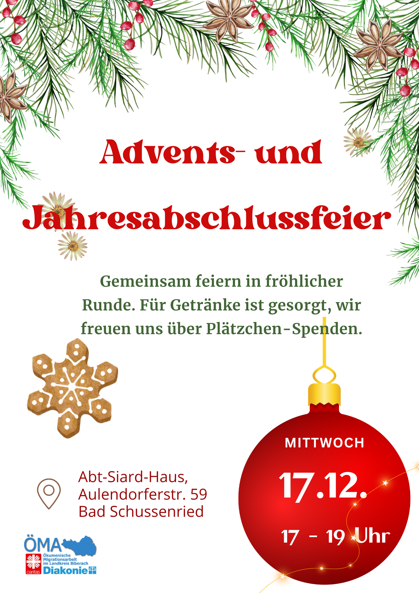 Für Getränke ist gesorgt, wir freuen uns über Plätzchen-Spenden.